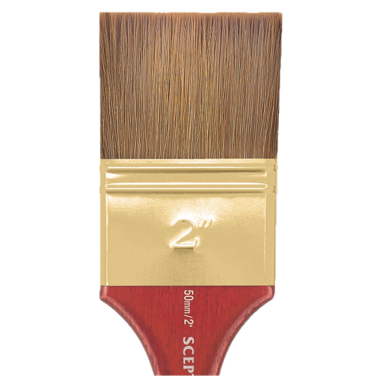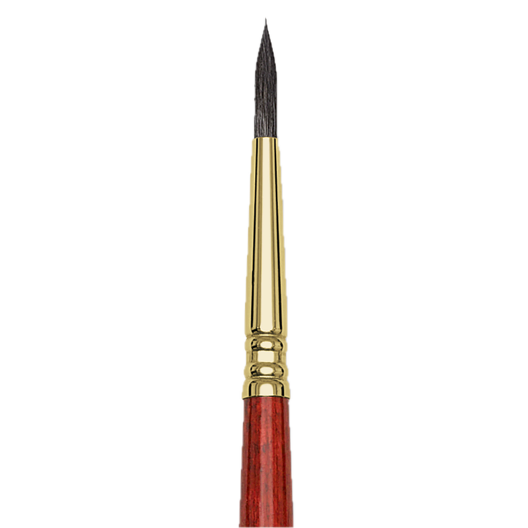 Winsor & Newton Sceptre Gold II, Wash, Short Handle, Size 2" is what I use in my now famous background washes on the large watch paintings.